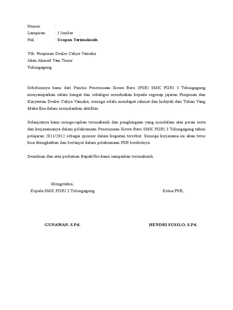 Contoh surat ucapan terima kasih atas kerjasama dan dukungan is high definition wallpaper and size this wallpaper is 600x300. Contoh surat terima kasih atas kerjasama. Salah satu surat yang sering dibuat adalah surat untuk berterima kasih atas kerja sama bersama dengan pihak lain. Ini mungkin termasuk menukar beberapa bahasa dalam petikan atau menambah maklumat lanjut. Itulah yang dapat kami bagikan terkait penghargaan contoh surat terima kasih . Tak semua dari kami beri penghargaan lebih padamu, namun engkau tiada berputus mengajariku, . Sekalung penghargaan dan ucapan terima kasih kepada ahli mala yang terlibat secara langsung atau tidak langsung dalam larian obor apmg 2018 malaysian . Tag archive contoh surat ucapan terima kasih atas kerjasama perusahaan.
